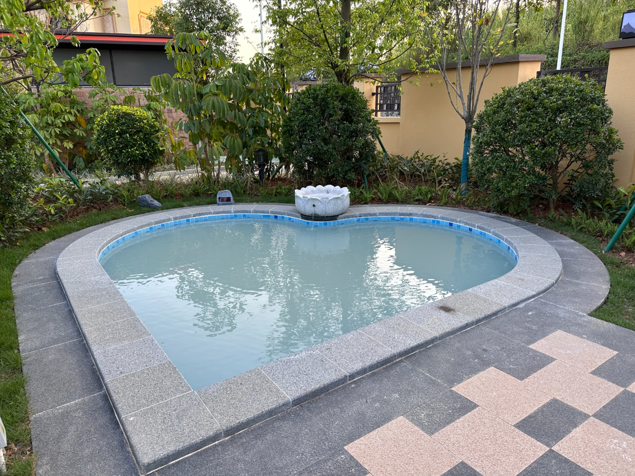 后花园紧靠泳道,打开院门就可下水畅玩