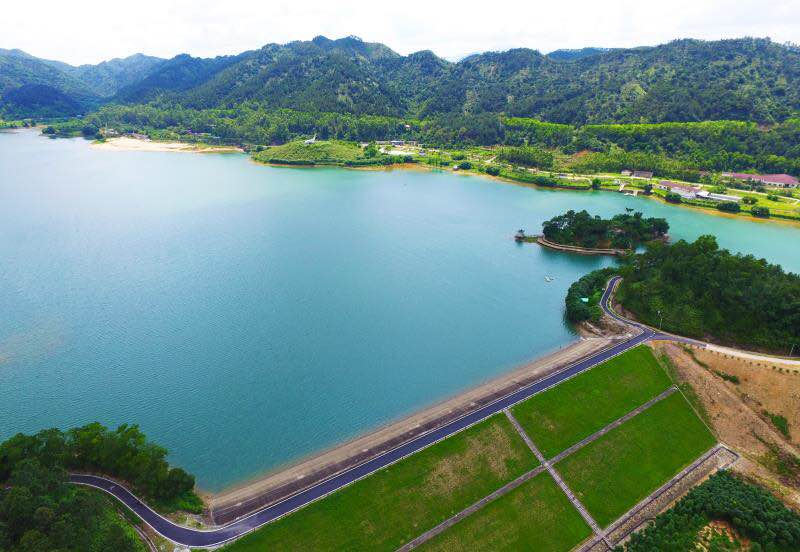 碧波荡漾、依山而建的青南角水库